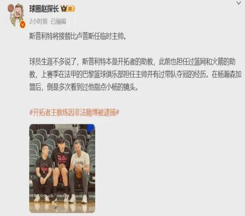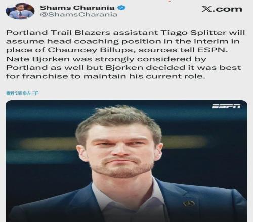 据爆料王Shams报道:蒂亚戈-斯普利特接替比卢普斯,暂时担任开拓者主教练职务。